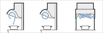 ヤマハ独自の水平渦巻き方式で強力に煙を集め両サイドのフィルターを通して排出するので気になるニオイが発生しません。フィルターも簡単に外れ手間もかかりません。